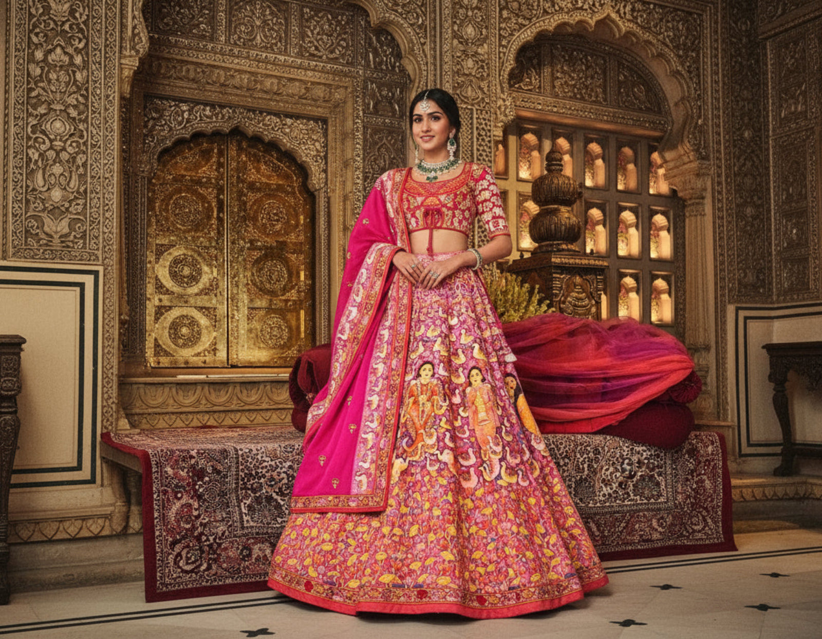 Exquisite Dusty Light Pink Velvet Bridal Lehenga with Embroidery